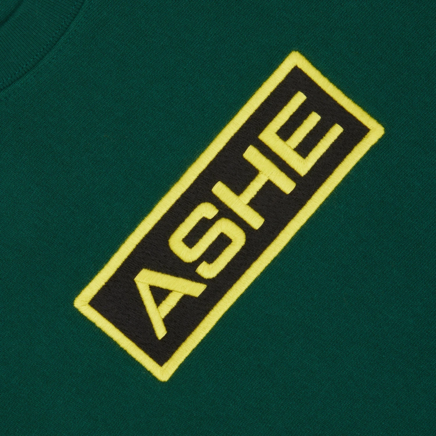 300GSM brushed fleeceback crewneck sweatshirt featuring an embroidered Ashe Sport logo.