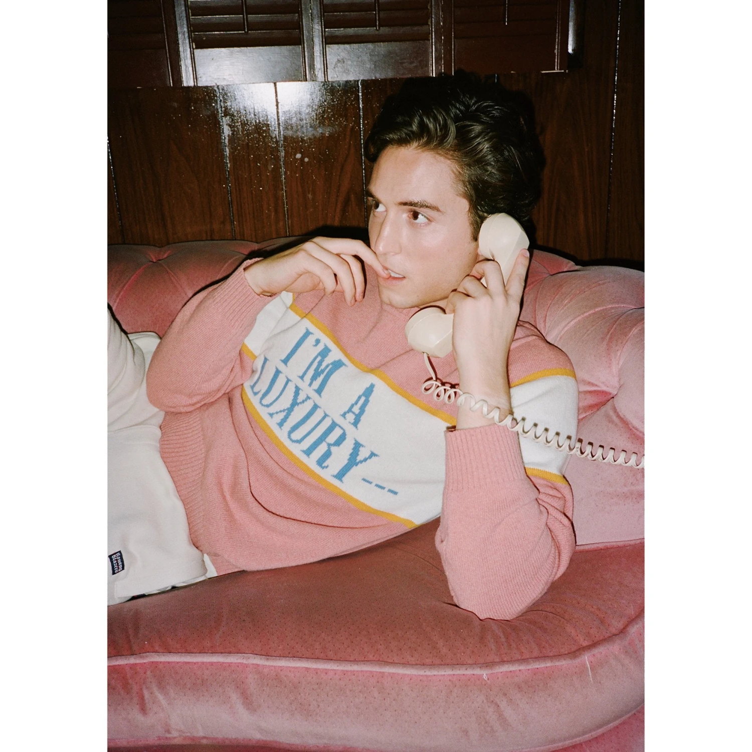 Gyles & George created the original “I’m a Luxury” jumper in the early ’80s in a range of colors. One of their sweaters on this design in a soft pink was famously worn by Princess Diana.