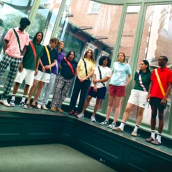 From Rowing Blazers founder Jack Carlson: “This shirt is based on a vintage Yale polo jersey from the early 80s. It was beautiful: navy blue soft pima cotton (no tech-y fabrics) with a hand-stitched white satin stripe – not too wide – running diagonally across the front. No one makes polo shirts like these (until now), and there’s a reason why: it’s not easy, because the pima cotton is a knit, and the satin is a woven. It has to be sewn by hand. But it’s worthwhile, because the result is just right. I would never buy a pieced pique diagonal stripe polo shirt, but this is a different animal altogether. You feel like Laddie Sanford, or like Steve McQueen in the Thomas Crown Affair. But it’s also modern and uncomplicated.”