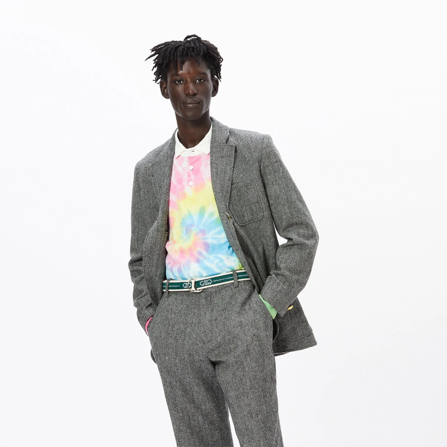 From Rowing Blazers Creative Director and founder Jack Carlson: ”I started Rowing Blazers to inject a sense of fun and humor into the classics. Since then, we’ve become known for our irreverence, use of color, attention to detail and obsessive dedication to quality, as well as our unexpected collaborations and cult following. This collection leans into color and texture, with made-to-order men’s and women’s suit separates in brightly-colored corduroy and the brand’s signature gun check and patchwork tweed; American-made cotton duck travel jackets with corduroy collars; sherpa jockey fleeces in new colorways as well as the brand’s trademark ‘croquet stripe’ and navy-red zig-zag pattern; rugby shirts in bright stripes as well as tie-dye; playing card knitwear; sweats, tees and accessories; as well as a range of 80s inspired sweaters made in collaboration with old-school English brand Gyles & George, founded by former member of British parliament Gyles Brandreth. I think sometimes people hear the word ‘classics’ and they think ‘stuffy.’ They hear ‘preppy’ and they think of something elitist and cringeworthy. These concepts have been hijacked and given a bad name. They’re supposed to be about bright colors and beautiful fabrics, but more importantly: having fun, being yourself, and flipping the bird to anyone who takes themselves too seriously.”
