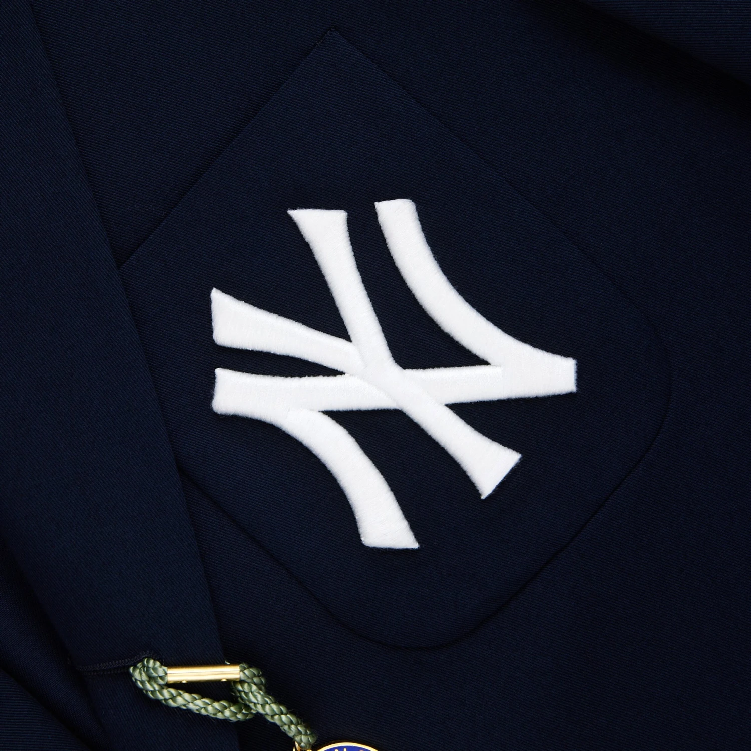 Men’s Rowing Blazers x ’47 cotton twill Yankees blazer featuring a 3-roll-2 silhouette, three patch pockets, quarter-inch topstitch “swelled seam” finishing and an embroidered team logo on the chest pocket. Cut to the original 1852 blazer pattern.