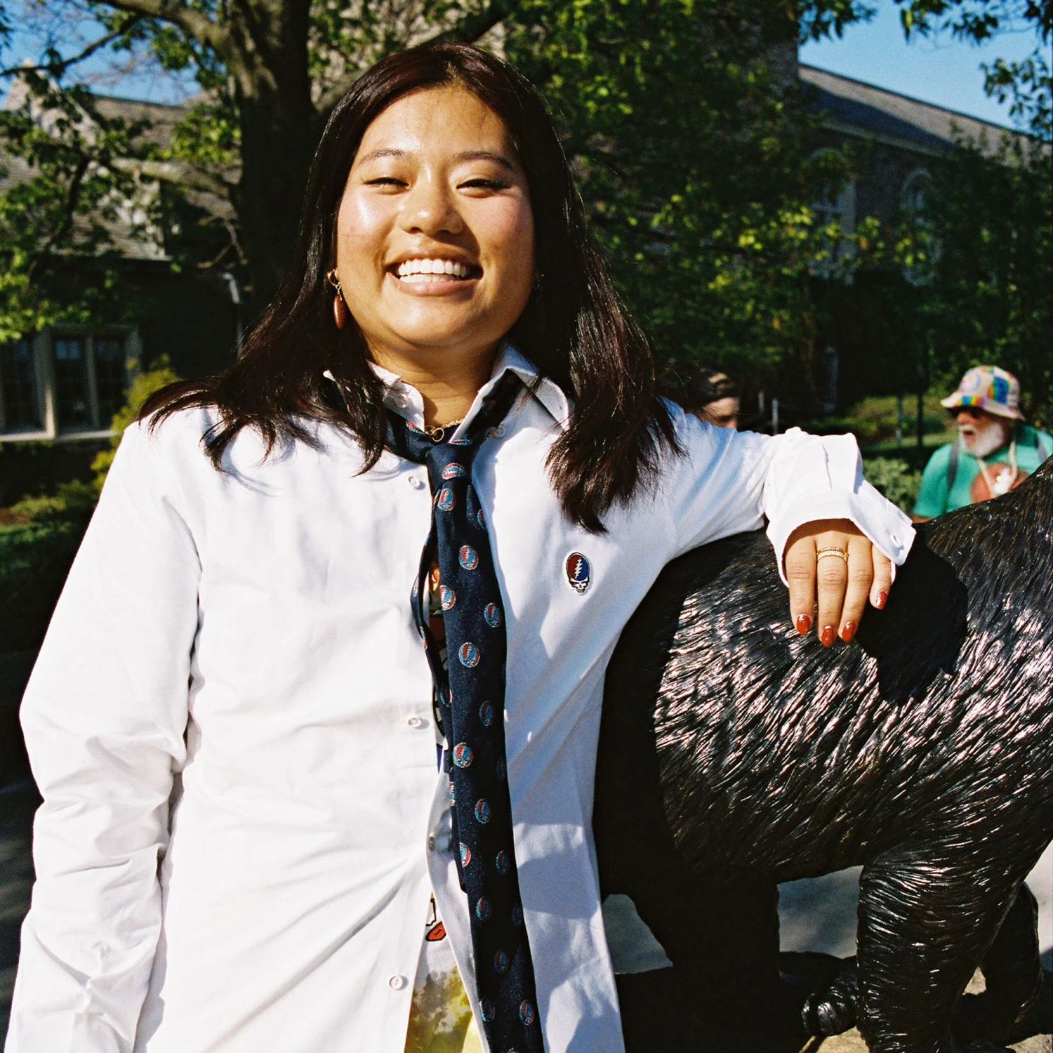 Our Rowing Blazers x Grateful Dead capsule was designed together with Delawarean Dead Head (and self-described “parking-lot purveyor of dry goods you’ll find at Shakedown Streets all across the greater northeast”) Mike Gracie. According to R.B. founder Jack Carlson, Gracie had been embroidering Rowing Blazers rugbies with Dead-inspired sporting motifs he created: “He was posting them on Instagram, and people were loving them. So we thought, hey — let’s actually do this.”