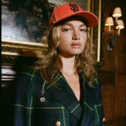 Women’s Gordon Modern tartan 6×2 double-breasted jacket.